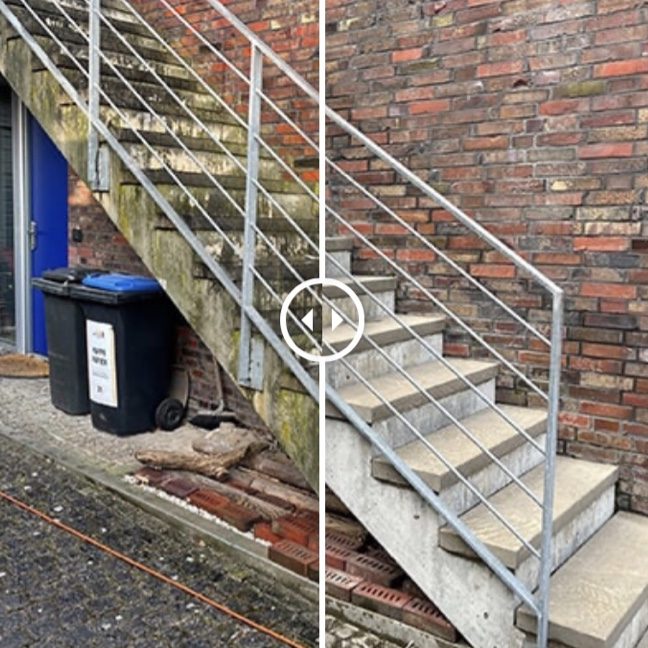Wir reinigen iIhre Beton Steintreppe und Imprägnieren diese das Moos und Schmutz sich nicht mehr so schnell, ablagert.