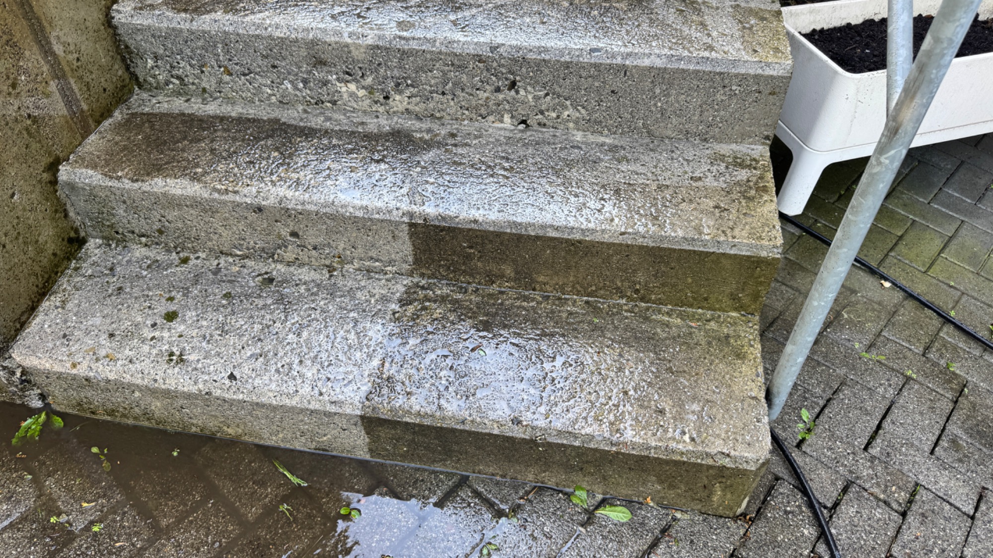 Wir reinigen iIhre Beton Steintreppe und Imprägnieren diese das Moos und Schmutz sich nicht mehr so schnell, ablagert.